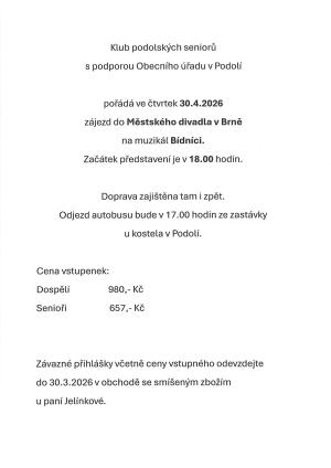 Zrušení úředních hodin na OÚ Podolí