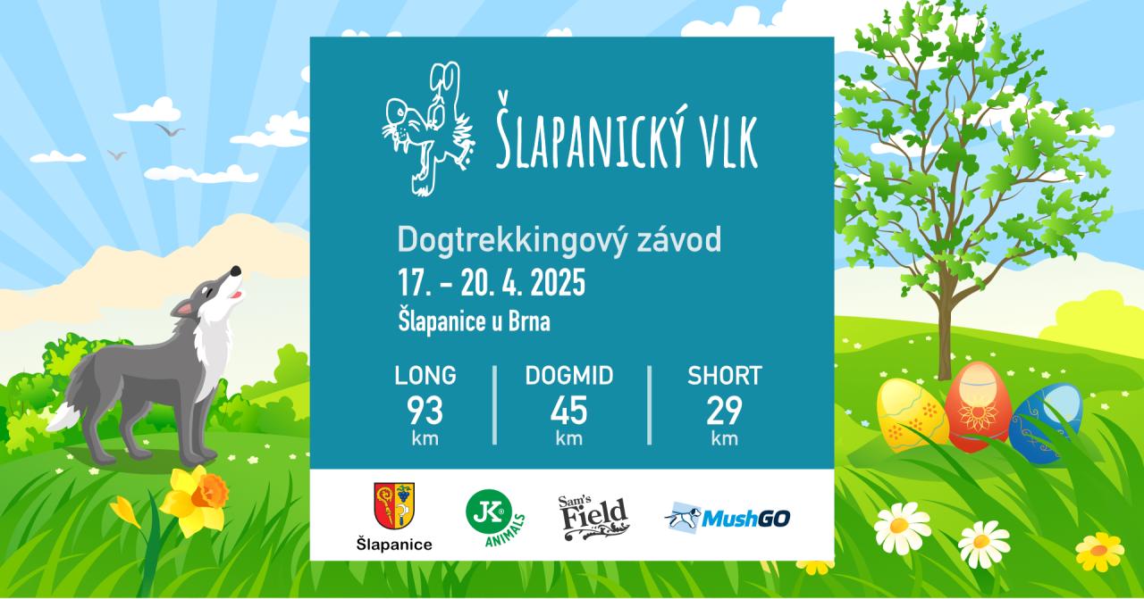 Kynologický klub Šlapanice pořádá 23. ročník dog-trekkingového závodu "Šlapanický vlk Moravským krasem" od 17. do 20. dubna 2025. Závodníci budou zdolávat trasy dlouhé 93 km (LONG) a 45 km (MID) s povinnou výstrojí a kontrolními body. Trasa povede převážně po turistických cestách a část trasy také katastrálním územím Vaší obce. Organizátor, Kynologický klub Šlapanice, očekává účast přibližně 50 týmů v LONG a 90-110 týmů v MID. V pátek a sobotu jsou naplánovány starty v brzkých ranních hodinách a vyhlášení vítězů proběhne v neděli dopoledne za účasti médií.