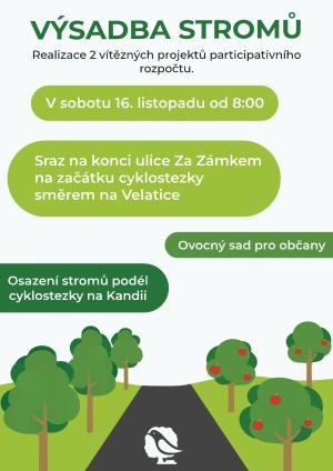 Chtěli bychom pozvat všechny občany, kteří by se chtěli spolupodílet na zasazení stromů, aby se dostavili v sobotu 16. listopadu od 8 hodin na konec ulice Za Zámkem na začátek cyklostezky směrem na Velatice.