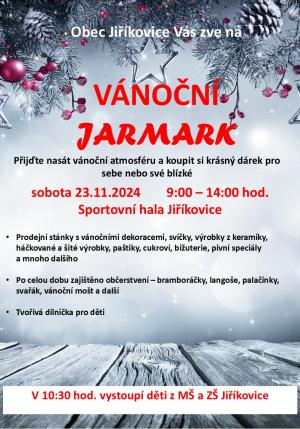 Obec Jiříkovice pořádá v sobotu 23.11.2024 Vánoční jarmark.