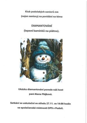 Klub podolských seniorů vás zve (nejen seniory) na povídání na téma DIAMANTOVÁNÍ (lepení kamínků na plátno).