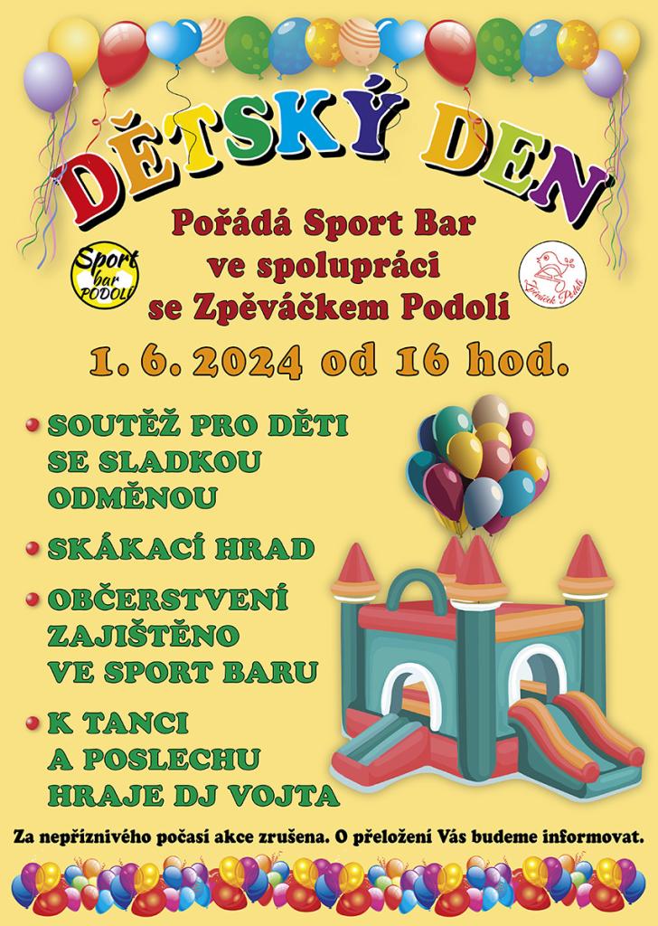 Sport Bar ve spolupráci se Zpěváčkem Podolí pořádá 1.6.2024 od 16 hodin DĚTSKÝ DEN.