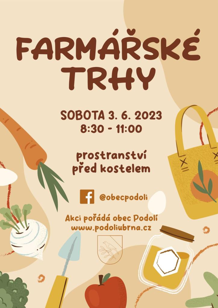 Obec Podolí vás zve na FARMÁŘSKÉ TRHY, které se konají 3. června od 8:30 do 11:00 na prostranství před kostelem v Podolí.