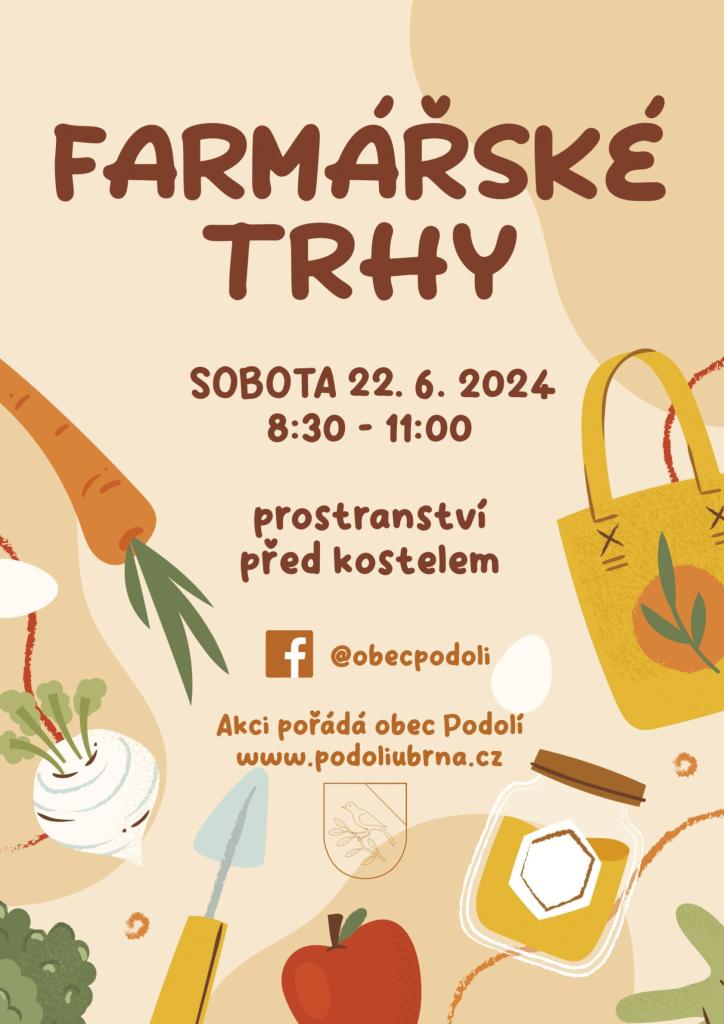 Obec Podolí vás zve na FARMÁŘSKÉ TRHY, které se konají 22. června od 8:30 do 11:00 na prostranství před kostelem v Podolí.