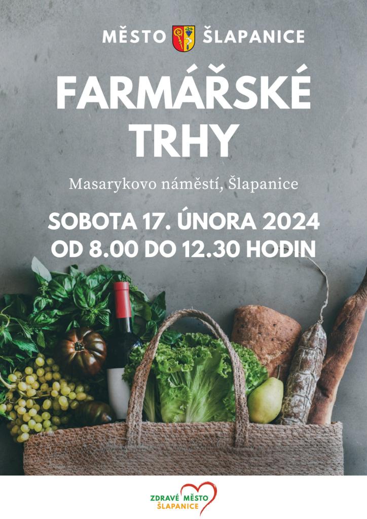 V sobotu 17.2. 2024 od 8:00 do 12:30 se na Masarykově náměstí ve Šlapanicích budou konat Farmářské trhy. Podrobnosti na webu Šlapanic.