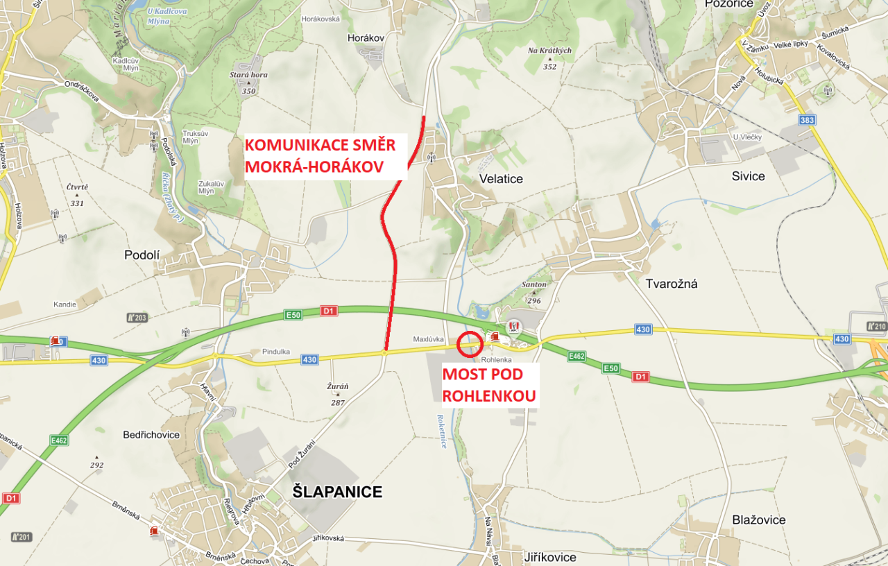 Druhou uzavírkou je pokračování v opravě silnice III/3833 od mostu přes D1 do Mokré-Horákova, která bude zahájena předběžně v pondělí 20. března a potrvá do konce července 2023. V opravovaném úseku bude kyvadlový provoz řízený semaforem. Pro osobní vozidla (a autobusovou linku č. 701) bude objízdná trasa vedena přes Velatice.