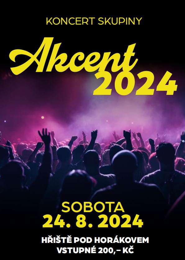 Kulturní komise obce Mokrá-Horákov zve všechny na koncert skupiny Akcent 2024 24. srpna na hřišti pod Horákovem.