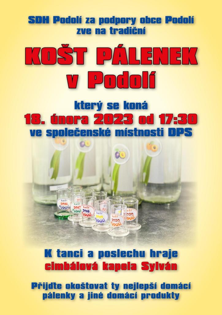 SDH Podolí za podpory obce Podolí zve na tradiční KOŠT PÁLENEK v Podolí, který se koná 18. února 2023 od 17:30 ve společenské místnosti DPS.