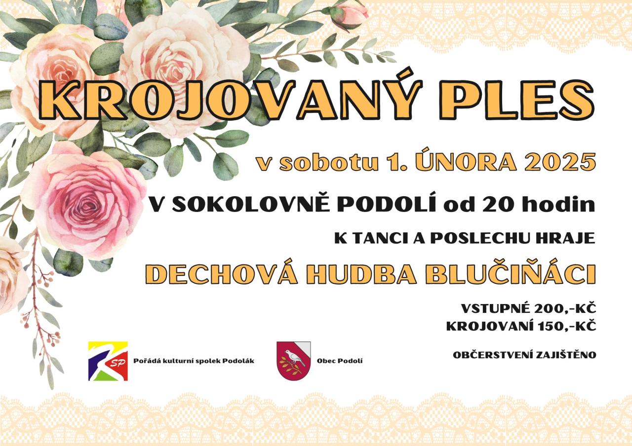 Kulturní spolek Podolák vás srdečně zve na KROJOVANÝ PLES v sobotu 1. února 2025 od 20:00 hod. v sále sokolovny v Podolí.