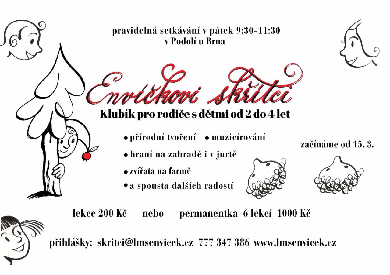 Lesní mateřská škola Envíček zve rodiče s dětmi od 2 - 4 let do naší školky na Envíčkovi skřítci.