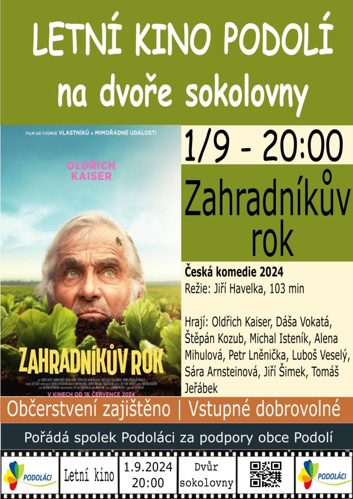 Spolek Podoláci zve všechny na třetí promítání letošního LETNÍHO KINA, které se koná 1.9. od 20:00 hodin na dvoře sokolovny.