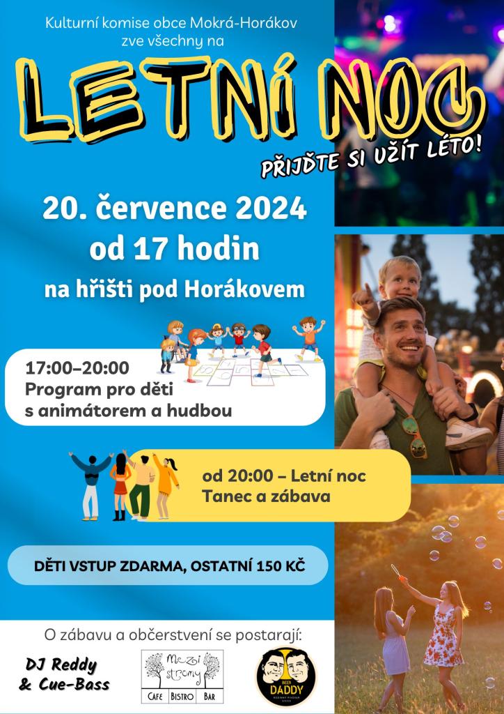 Kulturní komise obce Mokrá-Horákov zve všechny na LETNÍ NOC 20. července od 17 hodin na hřišti pod Horákovem.