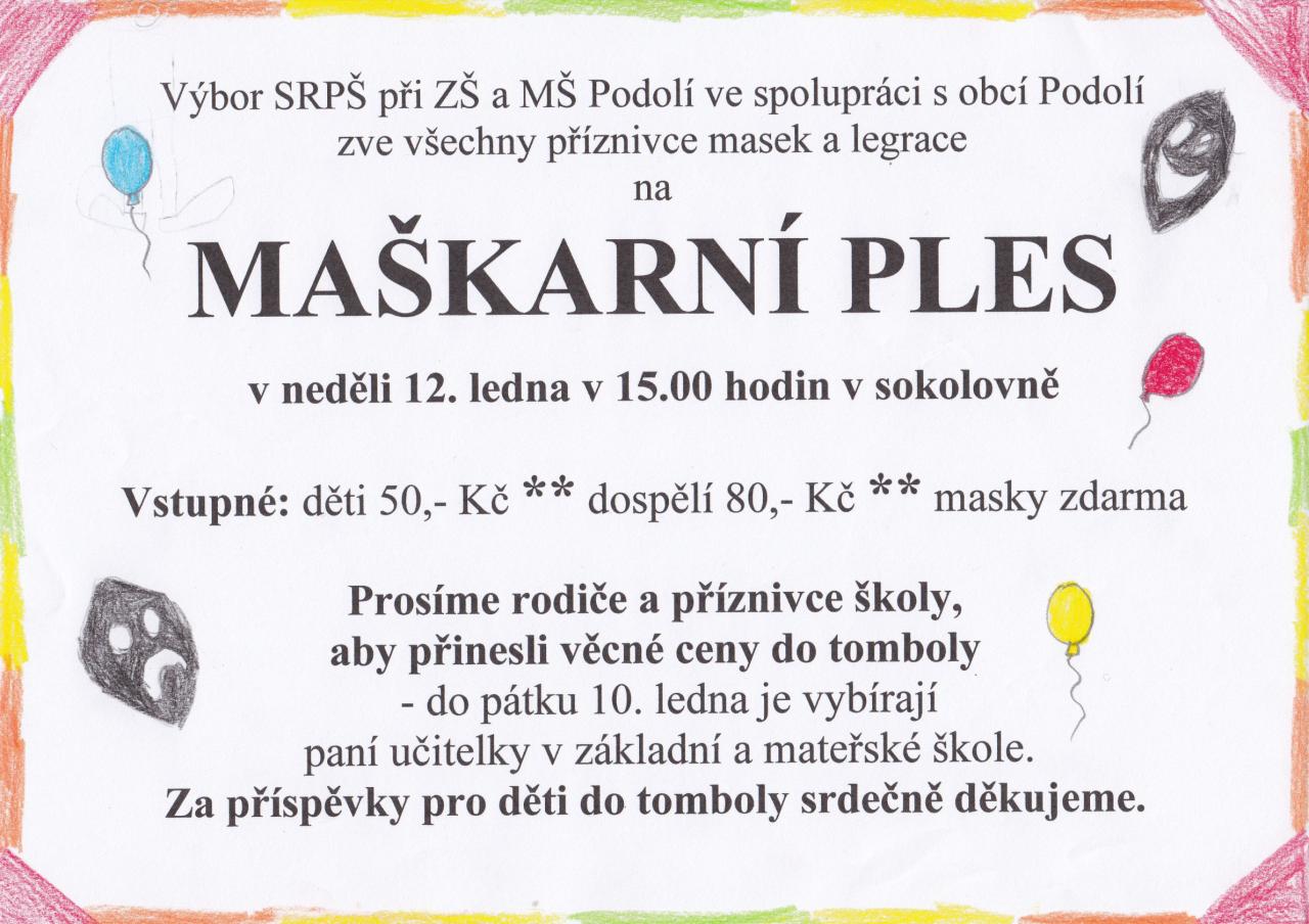 Prosíme rodiče a příznivce školy, aby přinesli věcné ceny do tomboly - do pátku 10. ledna je vybírají paní učitelky v základní a mateřské škole.
