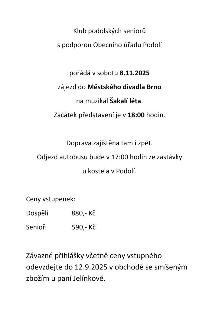 Odjezd autobusu: v 17:00 hodin ze zastávky u kostela v Podolí