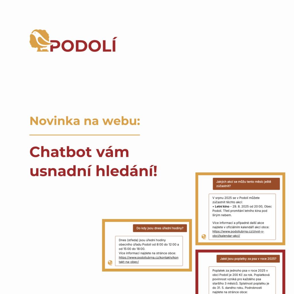 Na našem webu nyní najdete chytrého chatbota, který vám rychle poradí s tím, co potřebujete vědět. Odpovídá přímo z informací uvedených na webu, takže se ke správné odpovědi dostanete snadno a bez zdlouhavého hledání.