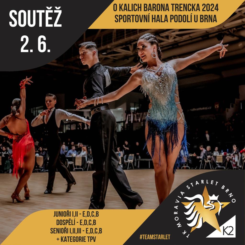 Zveme vás jménem tanečního klubu Moravia Starlet Brno K2 a Taneční školy Starlet na soutěž s názvem – O kalich barona Trencka 2024.