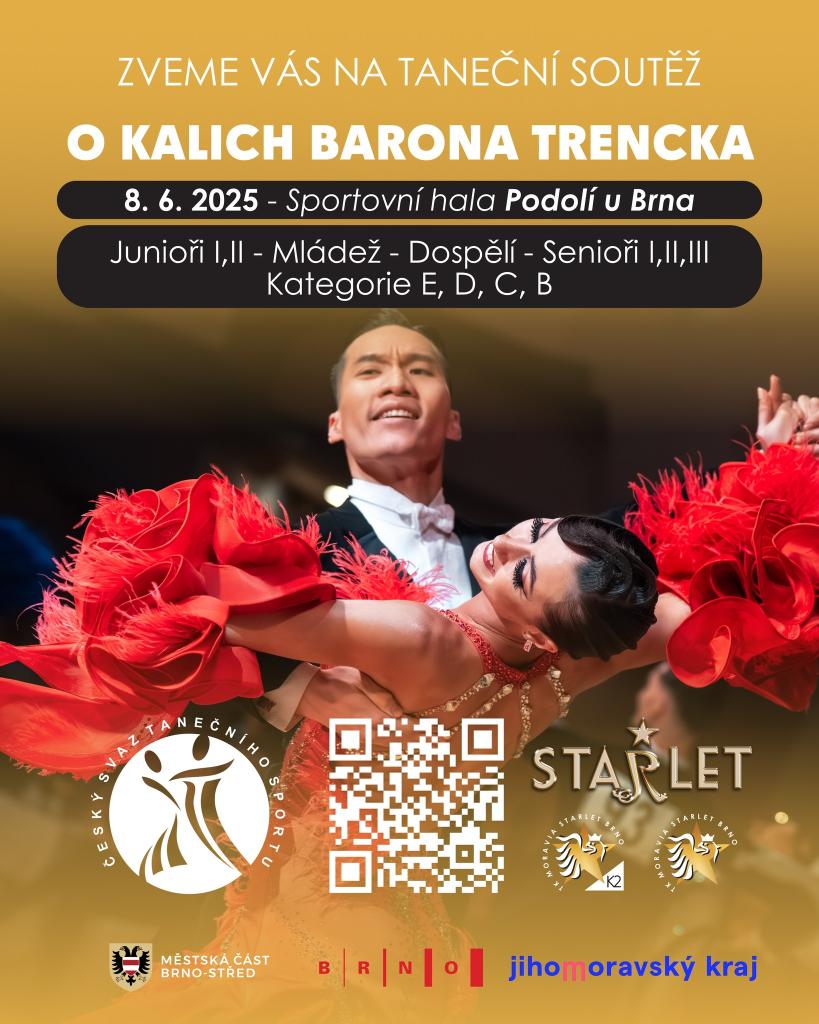 Zveme vás jménem tanečního klubu Moravia Starlet Brno K2 a Taneční školy Starlet na soutěž s názvem – O kalich barona Trencka 2025.