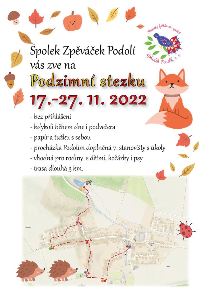 Spolek Zpěváček Podolí vás zve na Podzimní stezku, podrobnosti na .