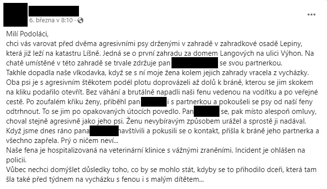 POZOR - NEBEZPEČNÍ PSI V LOKALITĚ LEPINY