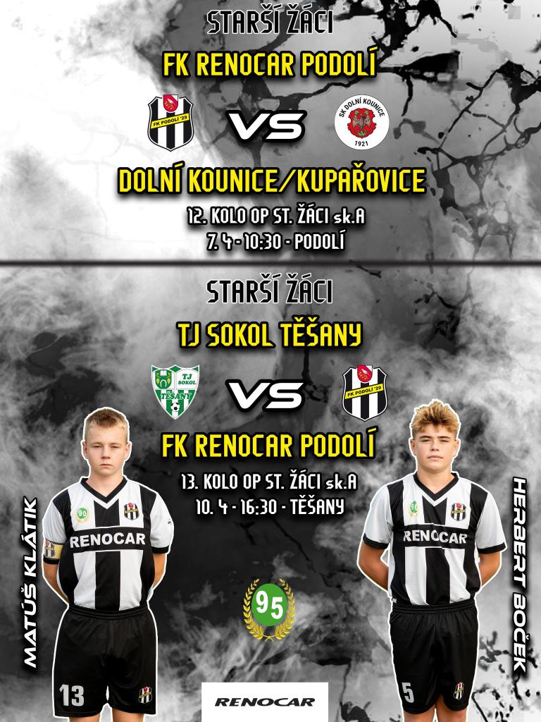 V neděli 7.4. v 10:30 h odehrají domácí zápas naši STARŠÍ ŽÁCI utkání proti týmu z Dolních Kounic/Kupařovic