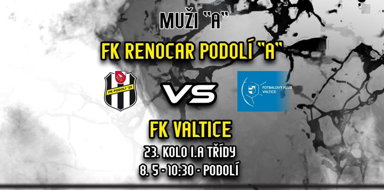 Ve středu 8.5. (státní svátek) od 10:30 odehrají naši MUŽI A domácí zápas s týmem FK Valtice.