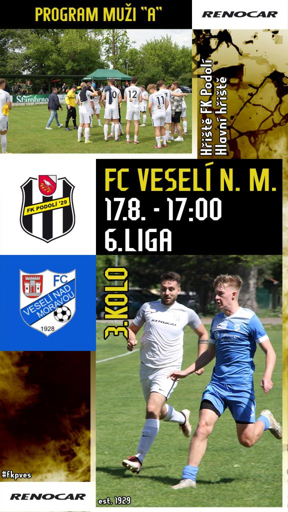 V sobotu 17.8. v 17:00 h odehrají naši MUŽI „A“ druhé utkání sezóny s týmem FC Veselí nad Moravou.