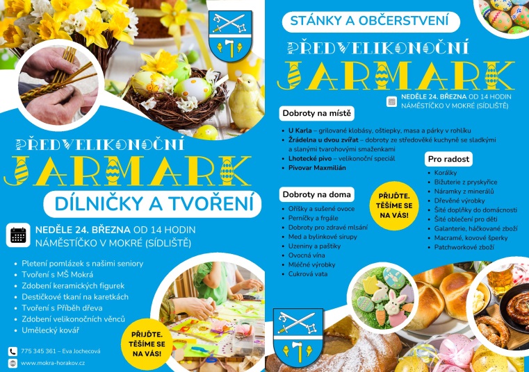 Obec Mokrá Horákov zve 24. března na Předvelikonoční jarmark.