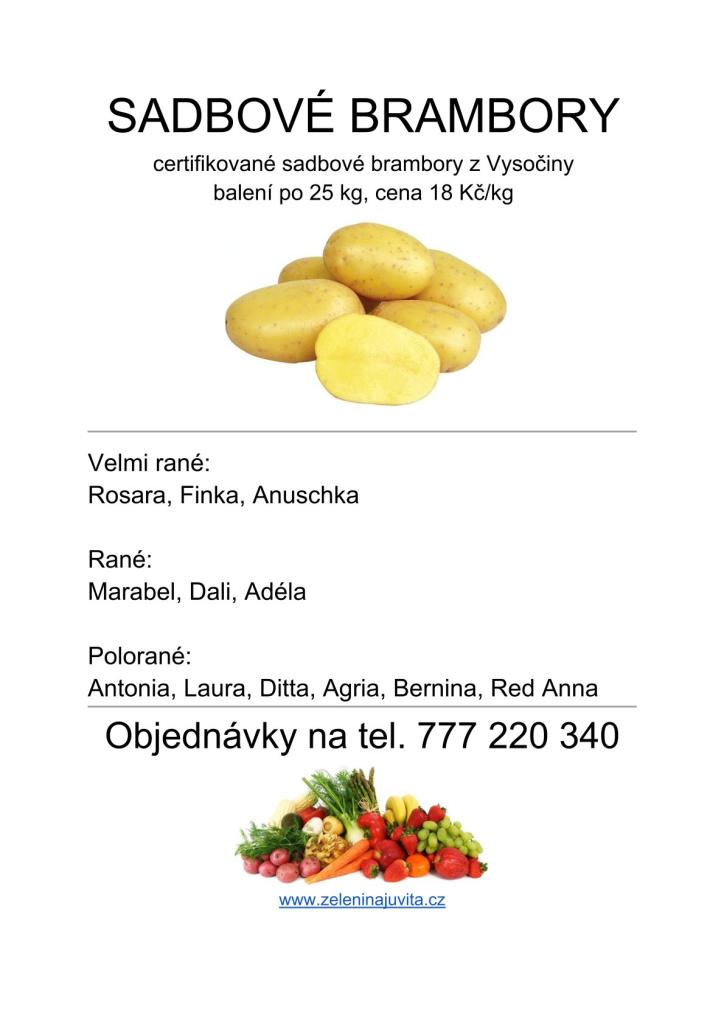 Řidič přijímá objednávky na sadbové brambory na telefonním čísle : 777 220 340
