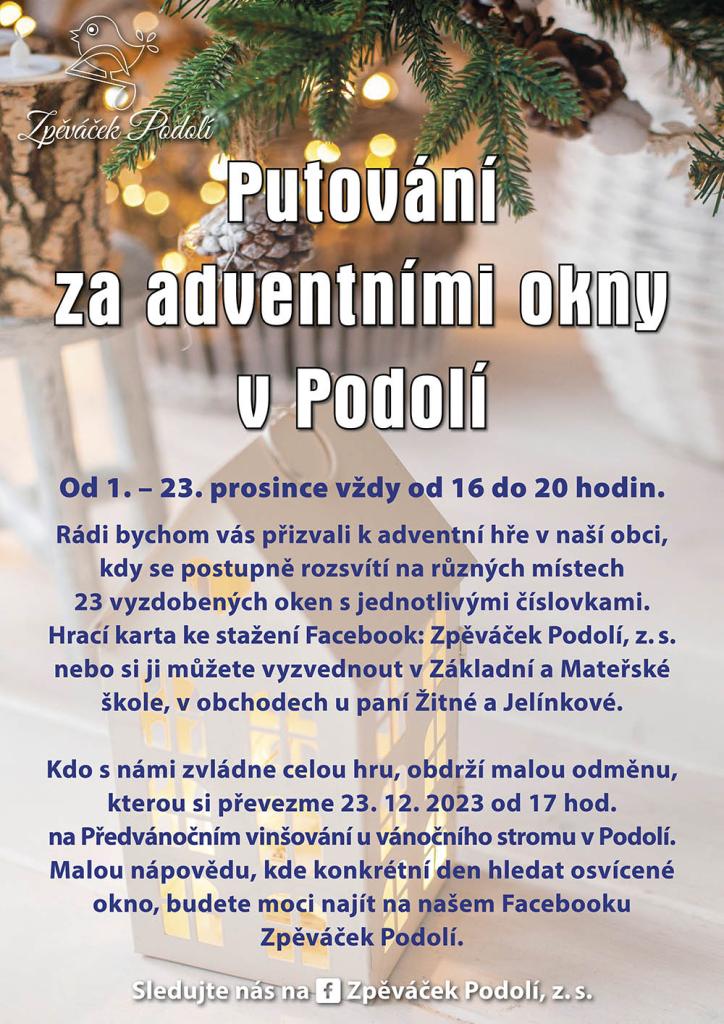 Spolek Zpěváček vás srdečně zve na Putování za adventními okny ve dnech 1.-23. prosince.