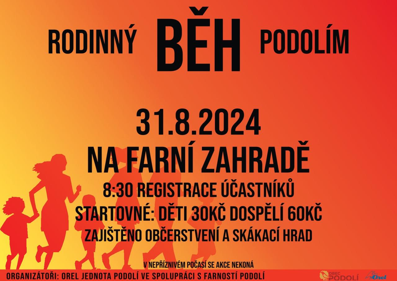 Orel jednota Podolí ve spolupráci s farností Podolí zve všechny na RODINNÝ BĚH PODOLÍM, který se koná v sobotu 31.8. od 8:30 hodin.