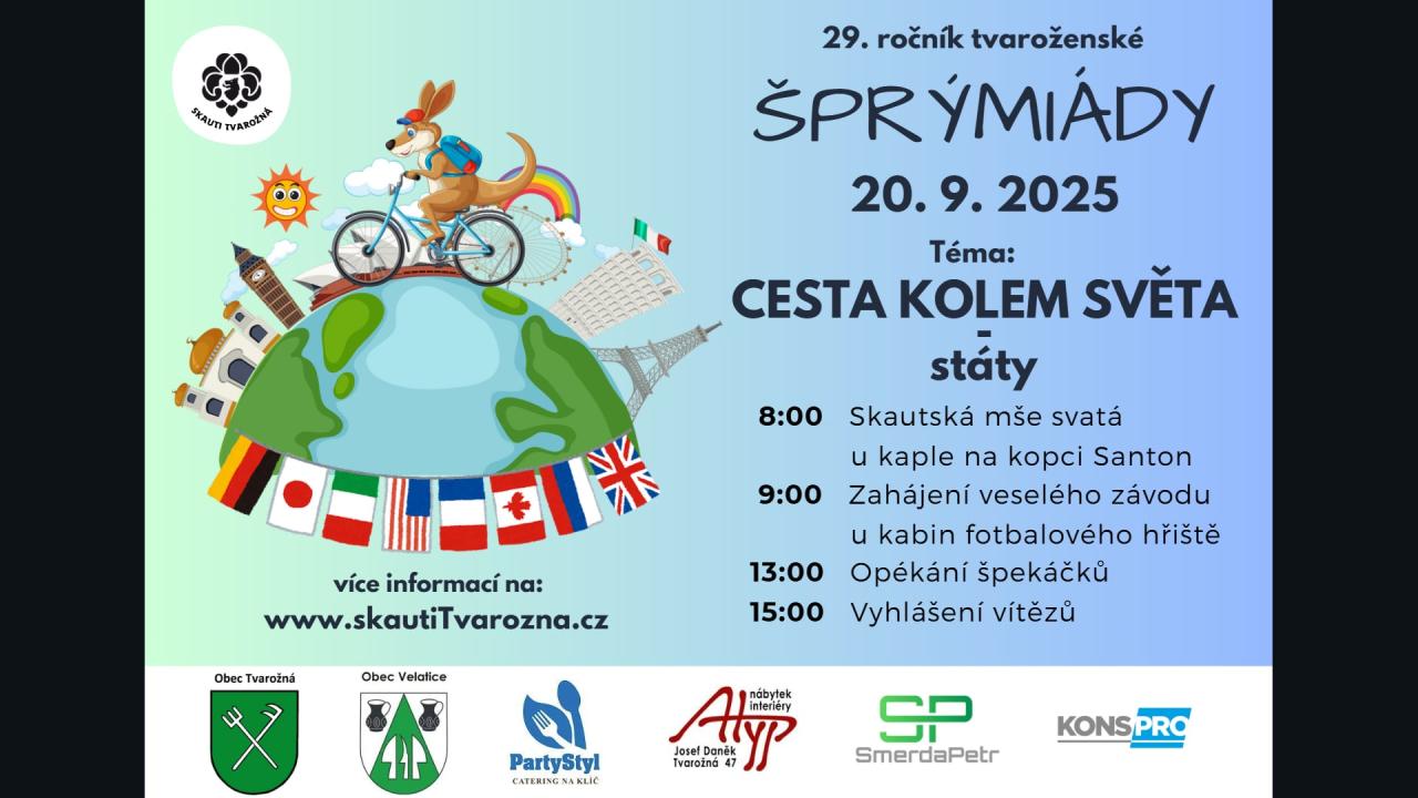 „Skauti Tvarožná zvou všechny děti na 29. ročník Šprýmiády, která se koná v sobotu 20. září na kopci Santon u Tvarožné.