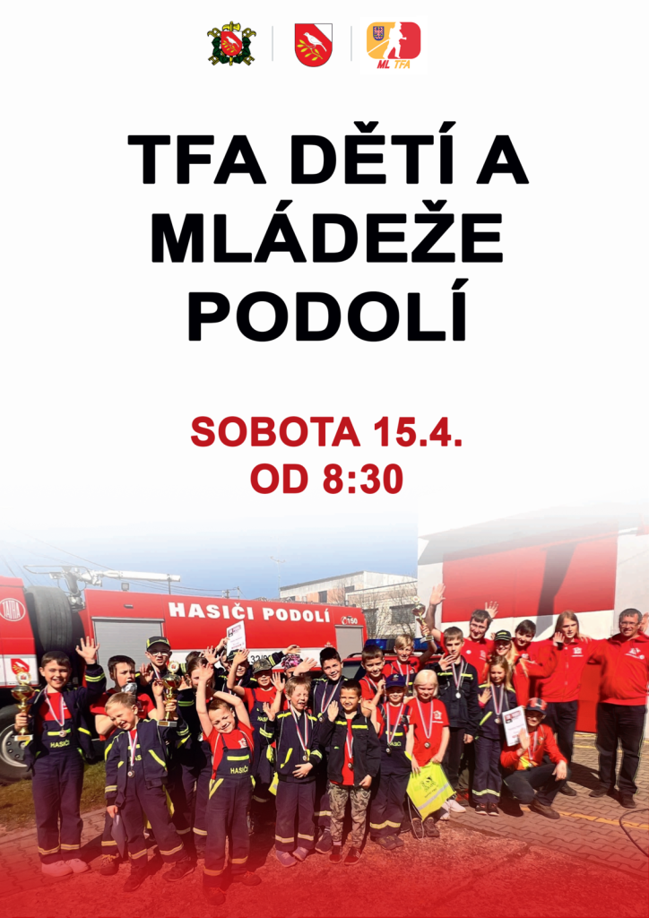 Sbor dobrovolných hasičů Podolí ve spolupráci s obcí pořádá v sobotu 15.4. od 8:30 na prostranství před požární zbrojnicí závody TFA dětí a mládeže. Přijďte podpořit všechny mladé závodníky.