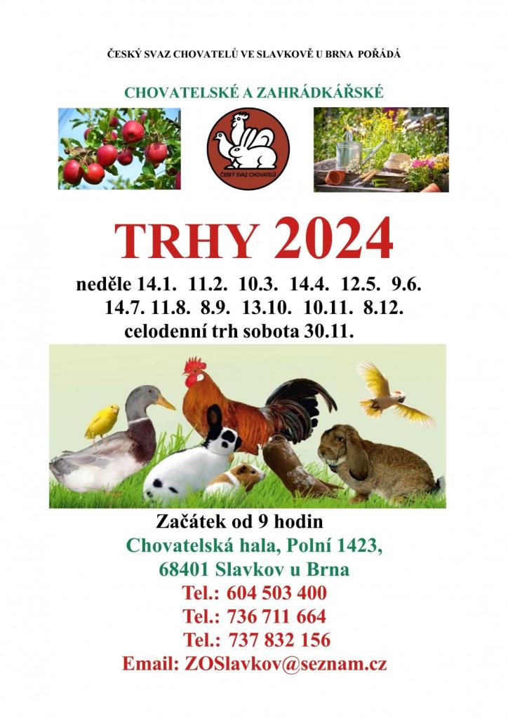 Trhy se konají vždy druhou neděli v měsíci, a to již tuto neděli 9. června od 9.00 hodin ve Slavkově u Brna, ulice Polní 1423 na hale chovatelů.