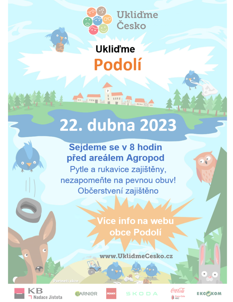 Obec Podolí pořádá v sobotu 22.4. jarní úklid naší obce a jejího okolí.