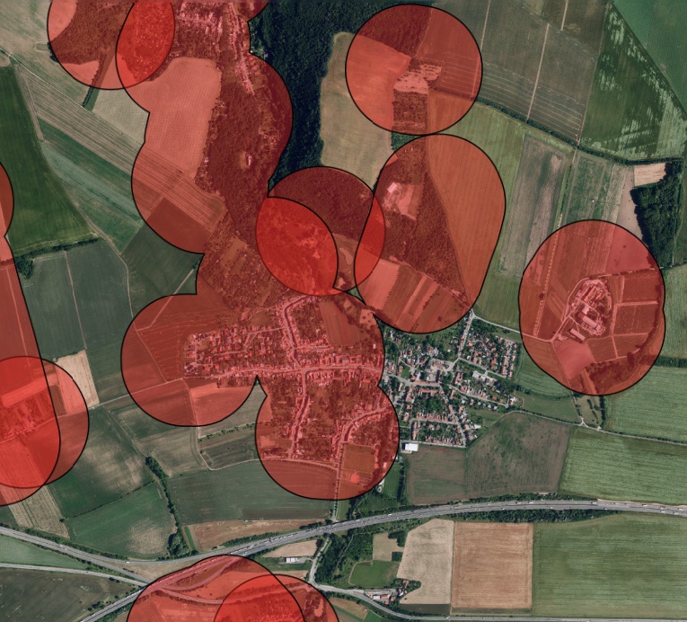 V těchto vyznačených zónách není dovoleno používat pyrotechnické výrobky vyšší kategorie než F1. Na přiloženém obrázku je uveden výřez mapy obce Podolí s vyznačenými zónami zákazu.