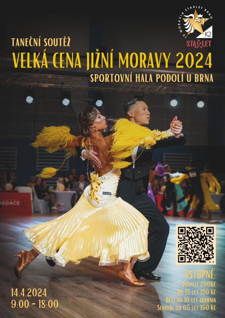 Zveme vás jménem tanečního klubu Moravia Starlet Brno K2 a Taneční školy Starlet na soutěž s názvem – Velká cena jižní Moravy 2024.