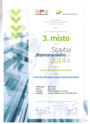V dubnu roku 2015 byla stavba mateřské školky ohodnocena v soutěži Stavba jihomoravského kraje 2014 3. místem v kategorii Stavby občanské vybavenosti.