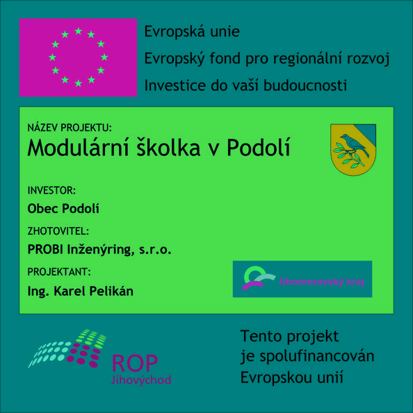 Stavba školky byla úspěšně dokončena v plánovaných termínech. Po kontrolách z ROP JV byla v březnu roku 2015 vyplacena obci Podolí schválená dotace v plné výši bez jakýchkoli korekcí.
